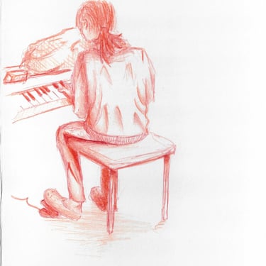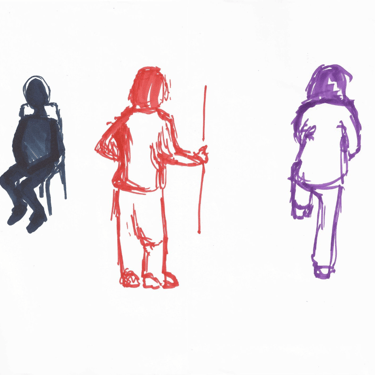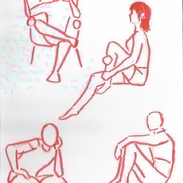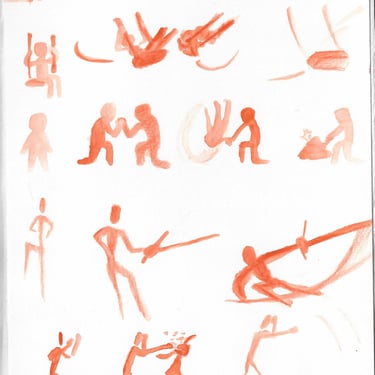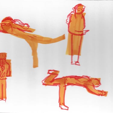 Quick sketches of real subjects using mostly orange.