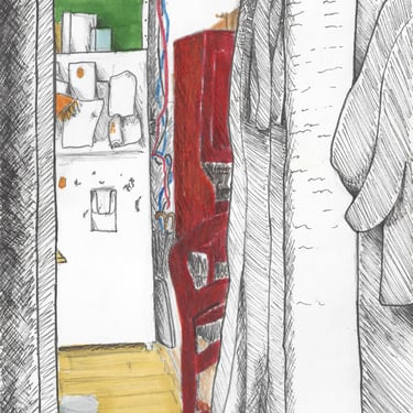 Quick studies looking from one space to another, conveying a feeling of the viewer's confined space.