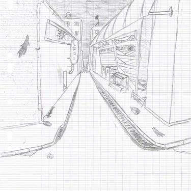 Drawings were either from my home or a journey taken.